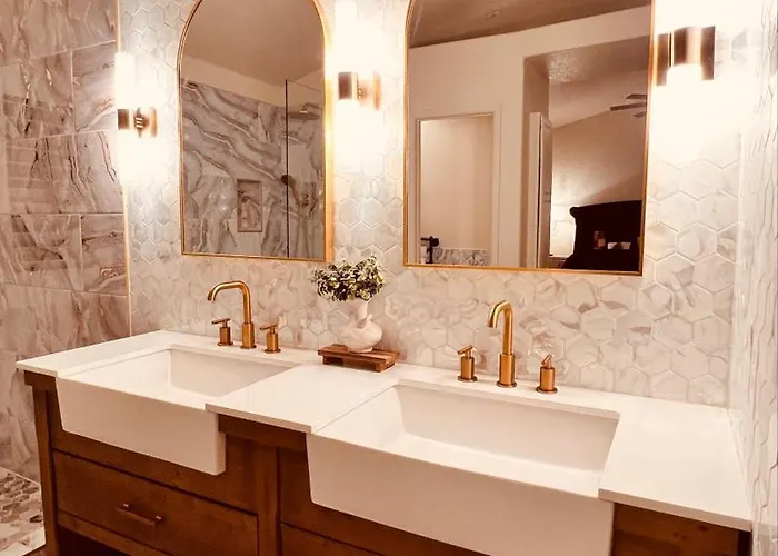 La villa Fragrant Finnish Sauna & Cozy Pool With French 3Br Las Vegas se encuentra a poco más de 15 minutos en coche del Parque Acuático Wet'n'Wild y ofrece sauna. Situada a unos 4 km de West Flamingo Park, esta villa cuenta con una terraza con vistas a las montañas.